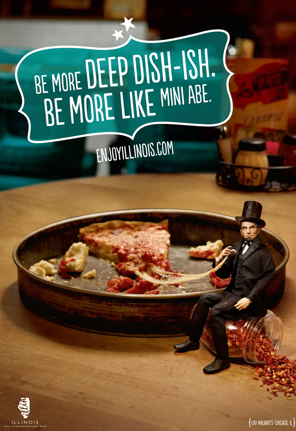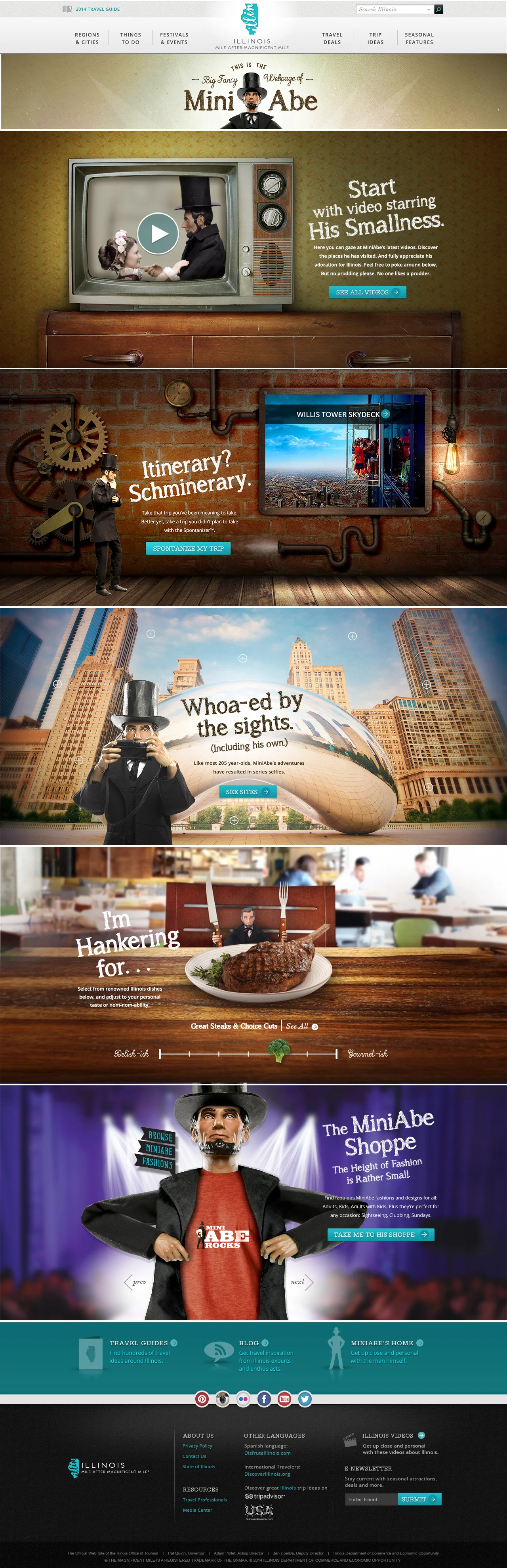 Illinois has a lot of tough competition when it comes to attracting Midwest visitors. With Wisconsin and its vast wilderness to the North and Michigan with all of its beautiful lakes to the East. We needed a campaign that could embody all of our diverse offerings and stand out as being unmistakably Illinois. MiniAbe delivered in a big way.